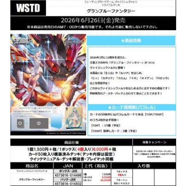 ヴァイスシュヴァルツ トライアルデッキ 『グランブルーファンタジー』(原箱)