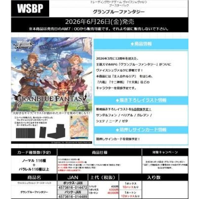 ヴァイスシュヴァルツ ブースター グランブルーファンタジーBOX (原條)